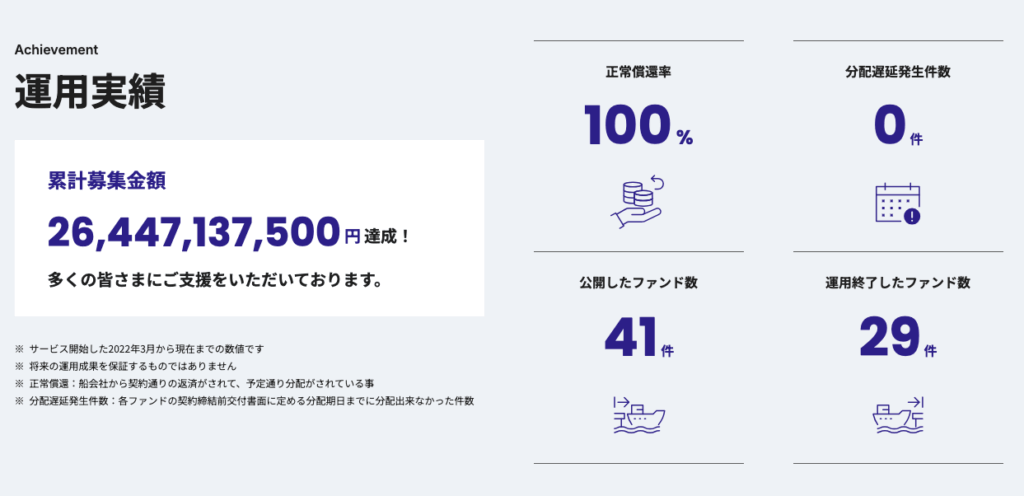 「船舶投資で未来を拓く。」をコンセプトに、これまで大口投資家にしか開かれていなかった「船」への投資機会を個人に広げ、少額からWeb上で投資できるサービスとして注目されています。