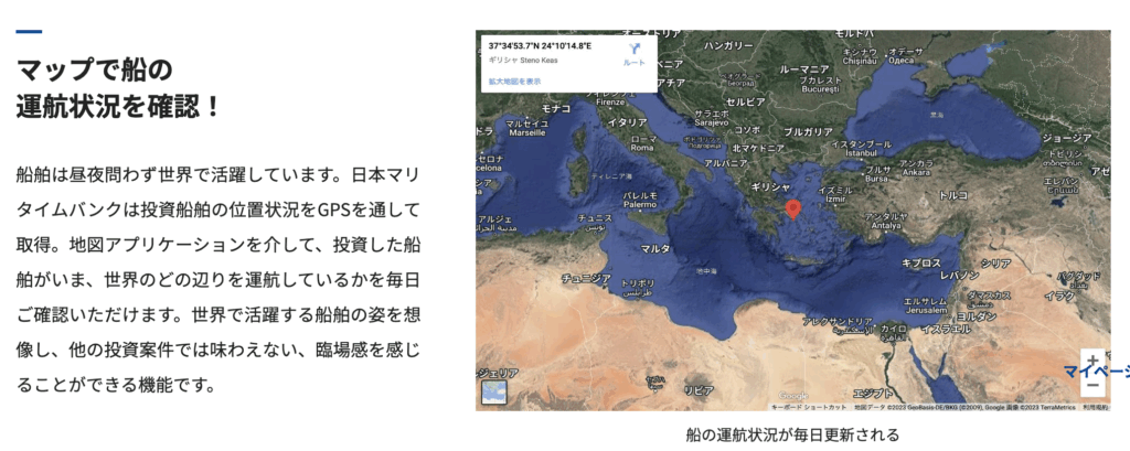 - 投資した船舶をリアルタイムで追跡できる唯一無二の体験